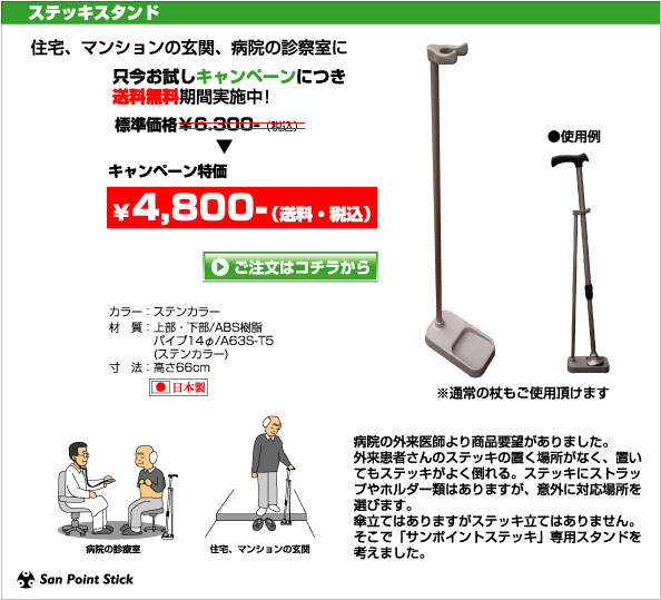 ボールジョイントにより石突き(杖先)が手首のように回転し、4つの支点で確実に路面を捕らえます。
